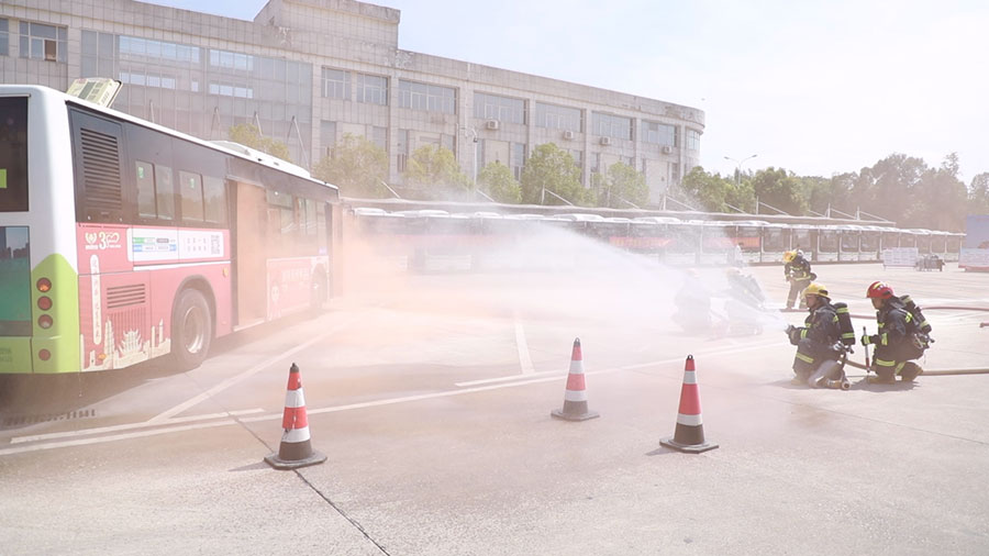 本次演練得到了望城區交通運輸局、望城區交警大隊、高塘嶺派出所、書堂山消防救援站、中國人保長沙市公司、華安保險湖南分公司等單位的專業指導,覆蓋反恐防暴、消防滅火、新能源充電樁火災處置等六大科目,全面模擬了公交運營及充電站運營過程中可能遇到的各種突發緊急情況,以實戰化演練切實提升應急處置能力。